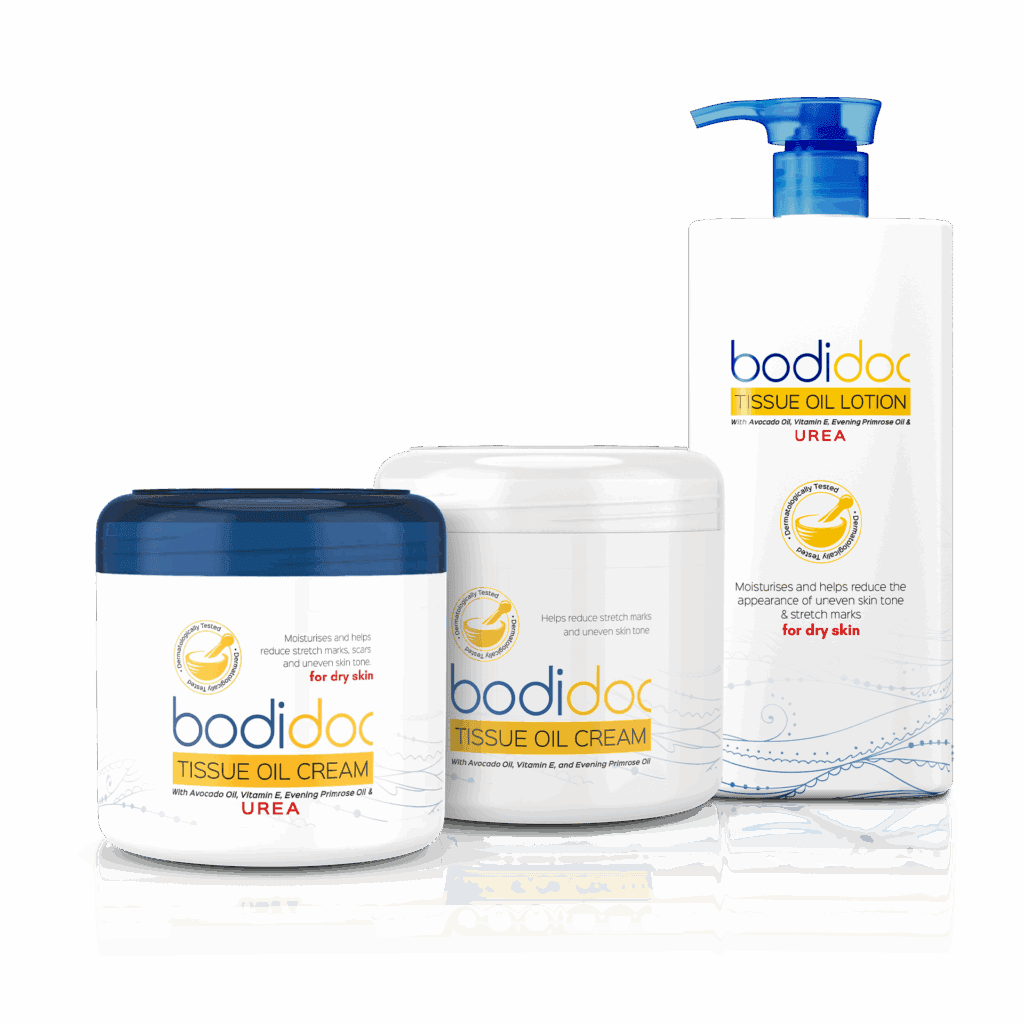 Packed with natural tissue oils to help reduce stretch marks, scars & uneven skin tone