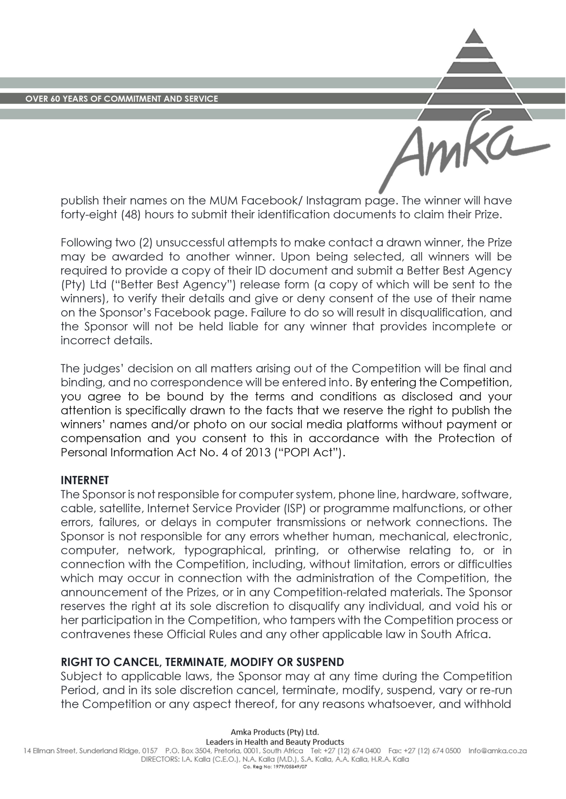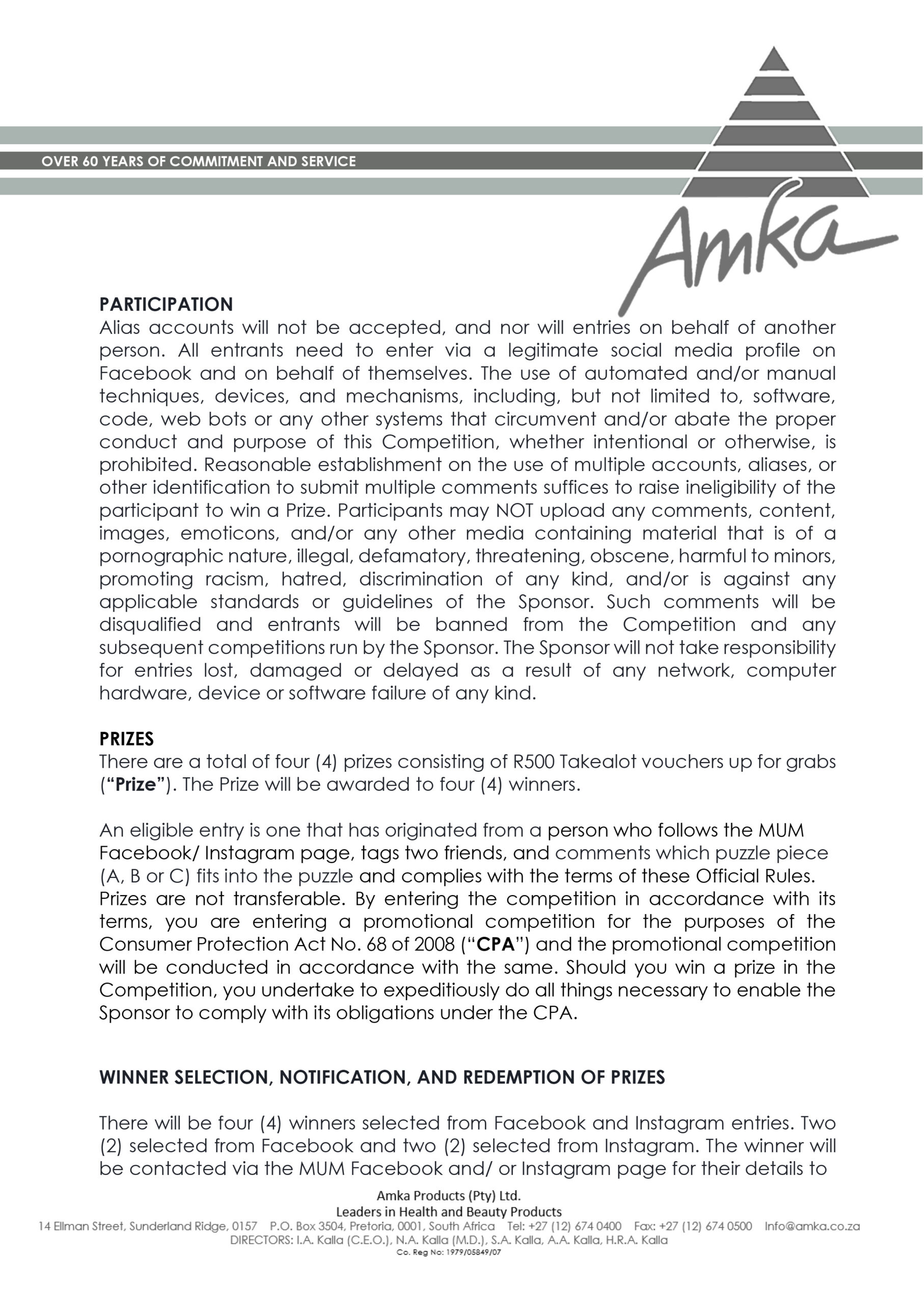 – Email us on info@amka.co.za (monitored Monday to Friday, excluding weekends and public holidays)